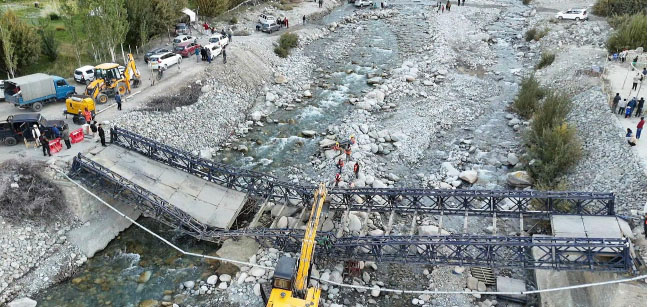 Ladakh, Oct 08: In a remarkable display of speed and efficiency, Project Vijayak of the Border Roads Organisation (BRO) has restored vital road connectivity to Turtuk and Sub Sector Haneef after the collapse of a 110-foot Double-Single Bailey Bridge at Skaru.