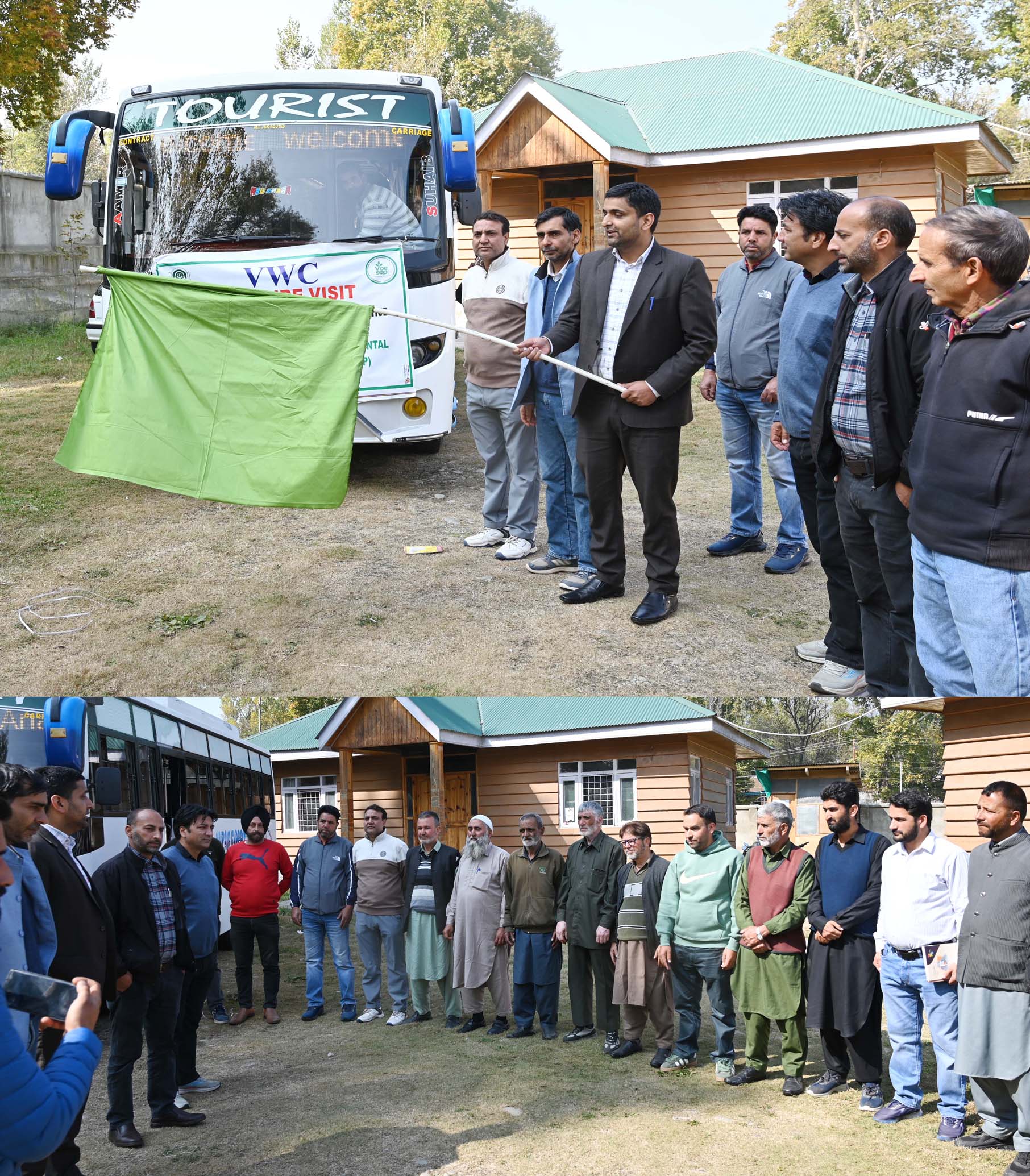 SHOPIAN, OCTOBER 22: In a significant step towards promoting climate resilience and sustainable development, Sub-Divisional Magistrate (SDM) Zainapora, Bilal Ahmad Wednesday flagged off an exposure visit of 29 Village Watershed Committees (VWCs) members of Zainapora area to Seer Hamdan, Anantnag, under the NABARD-supported Spring Shed development project initiative.