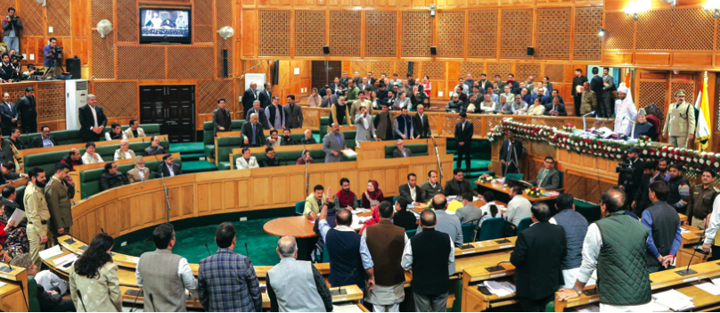 Srinagar, Oct 31: The Jammu & Kashmir Legislative Assembly on Friday witnessed protests from legislators of the ruling National Conference (NC) against a news portal for circulating a video showing an MLA scrolling through social media during the House proceedings.