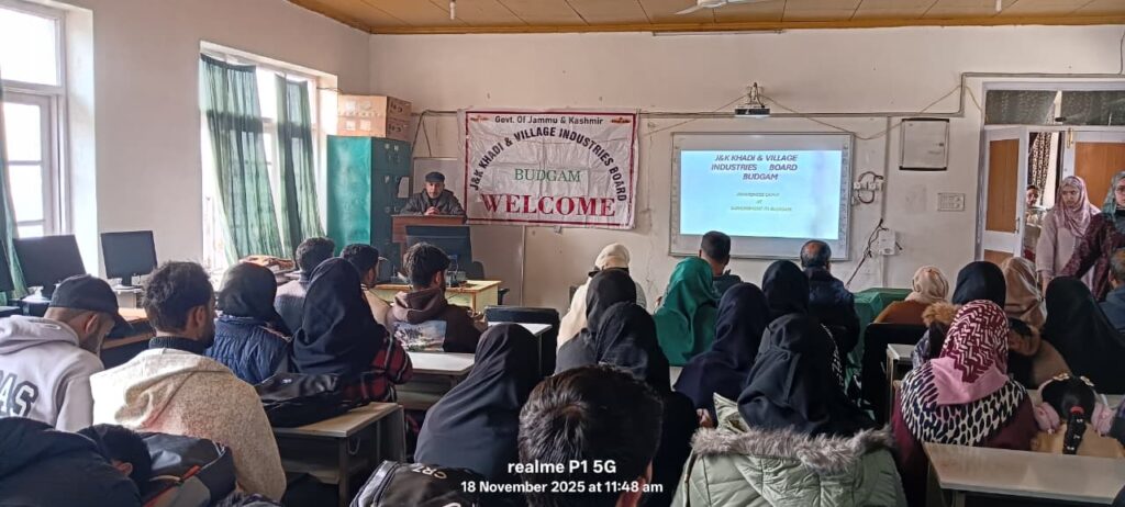 BUDGAM, NOVEMBER 18:  Jammu & Kashmir Khadi and Village Industries Board (J&K KVIB), District Office Budgam Tuesday successfully organized an Awareness Camp-cum-Interaction Programme at ITI District Budgam.