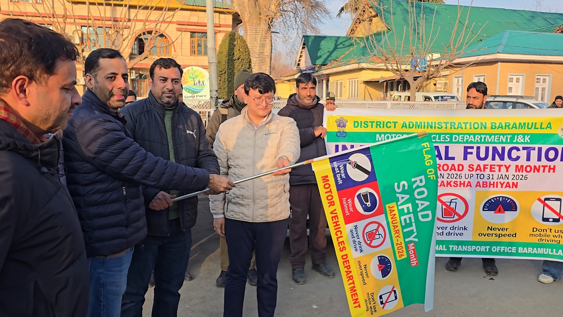 BARAMULLA, JANUARY 02: As part of Road Safety Month from 01 to 31 January, the Deputy Commissioner Baramulla, Minga Sherpa Friday flagged off a road safety awareness rally to sensitise the public about safe driving practices and traffic discipline.