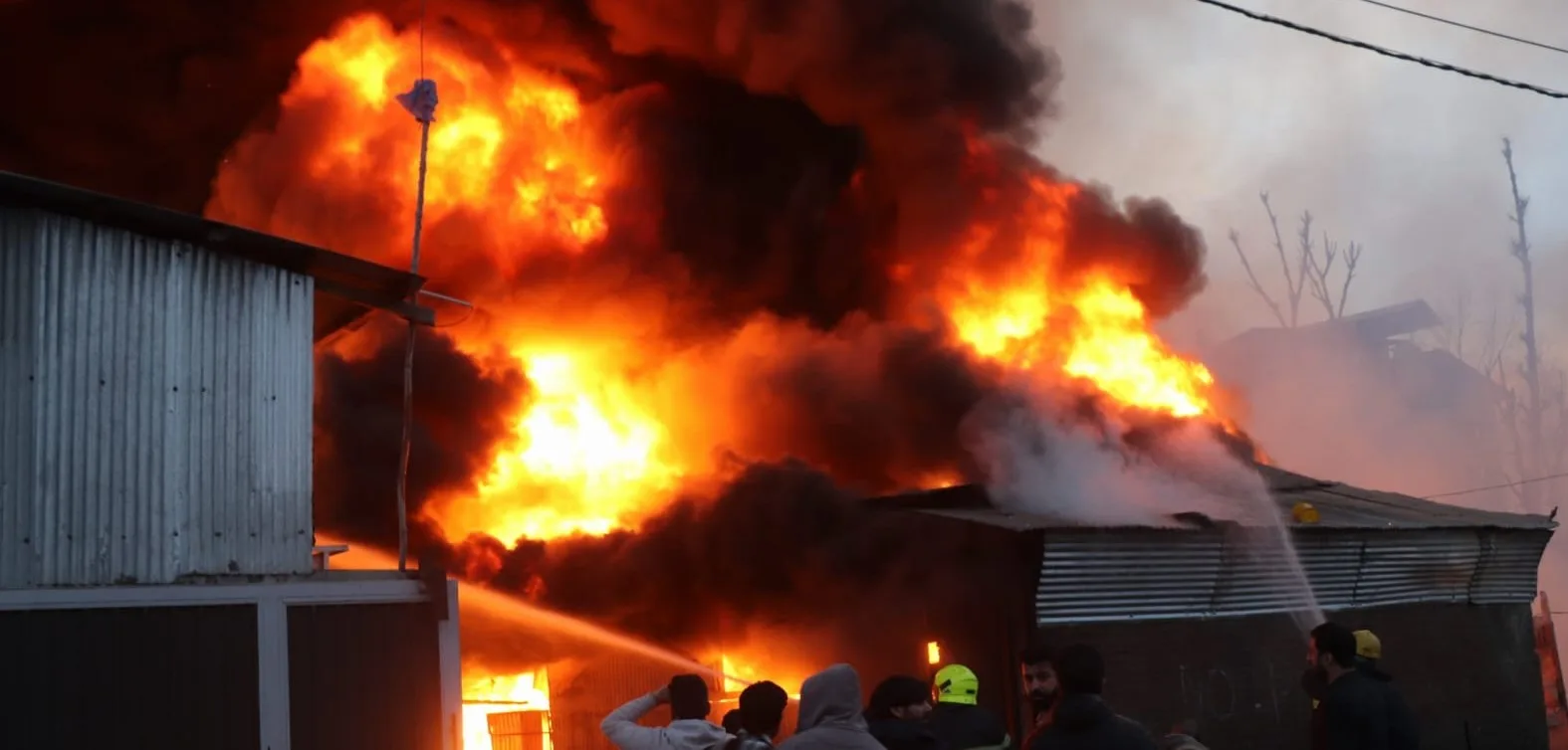 Srinagar, Jan 06: A massive fire broke out in a commercial unit at Bulbul Bagh, Tengpora area near Old Barzulla here on Tuesday evening, gutting several adjoining sheds and sending thick plumes of toxic smoke billowing into the sky.
