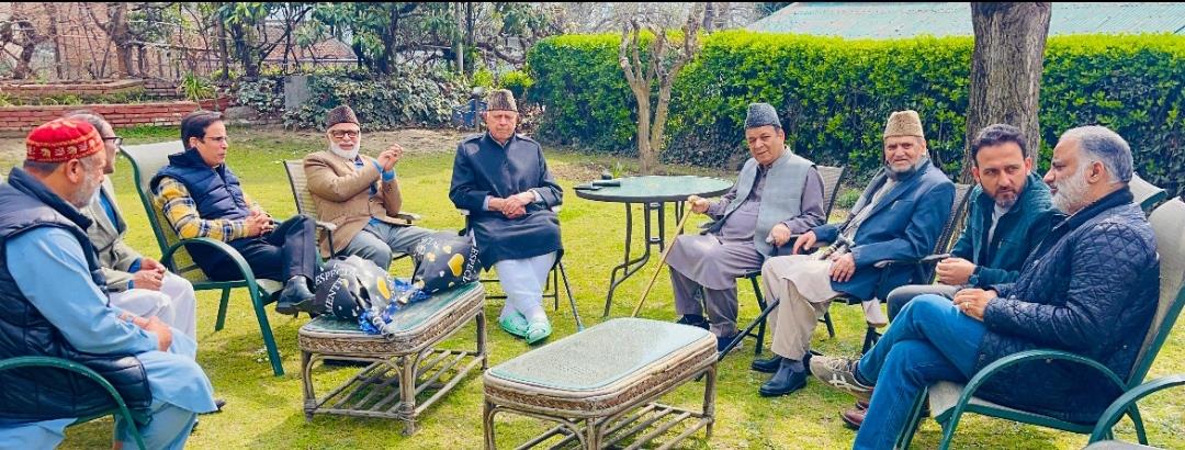 Srinagar, Mar 14: A large number of party functionaries, legislators, opposition leaders, MLAs and people from different walks of life called on Party President Dr. Farooq Abdullah to express their good wishes following his close shave from a deadly assassination attempt. Party’s Vice President and Chief Minister Omar Abdullah was also present on the occasion.