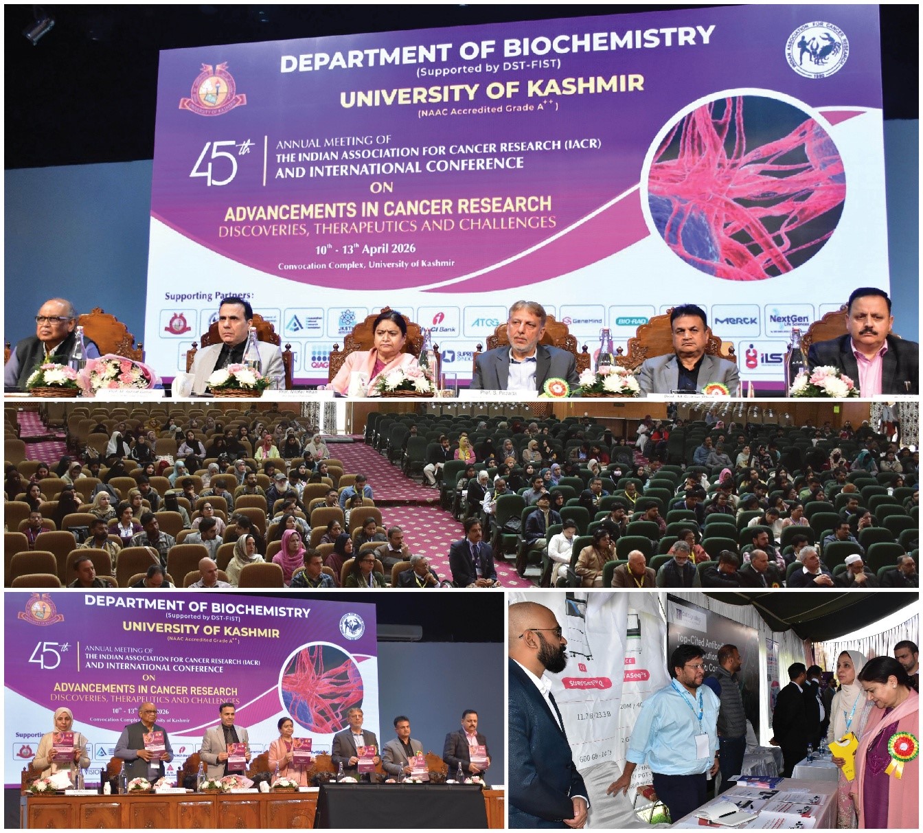 Srinagar April 10: The Department of Biochemistry, University of Kashmir (KU), on Friday inaugurated the 45th Annual Meeting of the Indian Association for Cancer Research (IACR), alongside a four-day international conference titled ‘Advancements in Cancer Research: Discoveries, Therapeutics and Challenges’ at the varsity’s Main Campus.