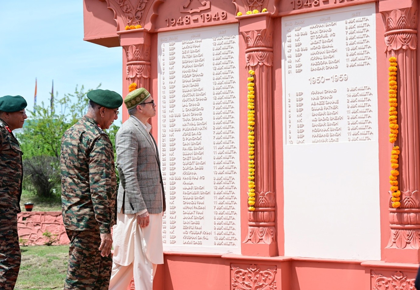 Srinagar, Apr 15: Chief Minister Omar Abdullah on Wednesday rededicated the renovated War Memorial and attended the 78th Raising Day celebrations of the Jammu & Kashmir Light Infantry (JAK LI) Regimental Centre at Srinagar.