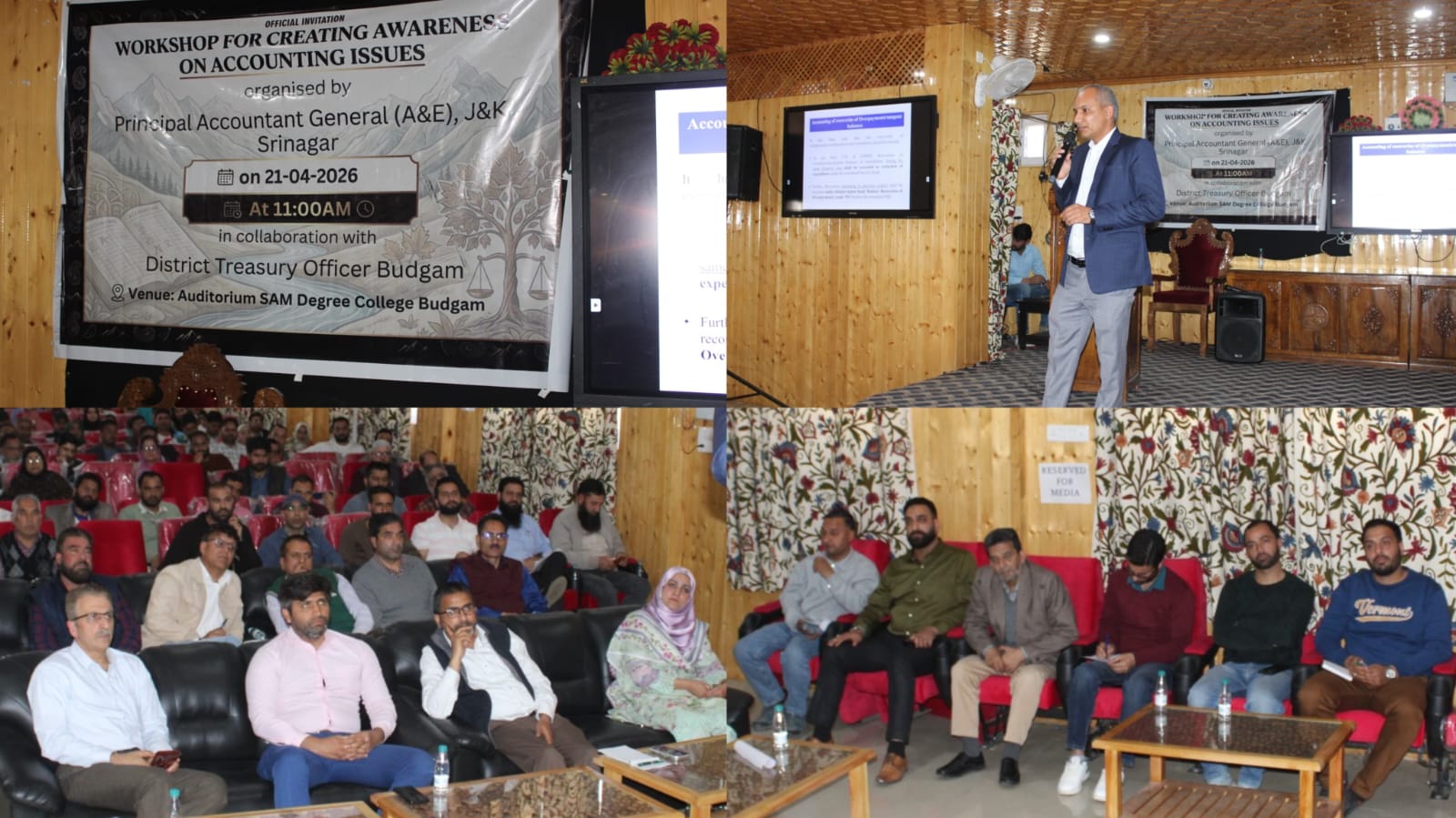 BUDGAM, APRIL 21: District Level Workshop on capacity building and awareness regarding accounting procedures conducted Tuesday at the Auditorium of SAM Degree College Budgam.