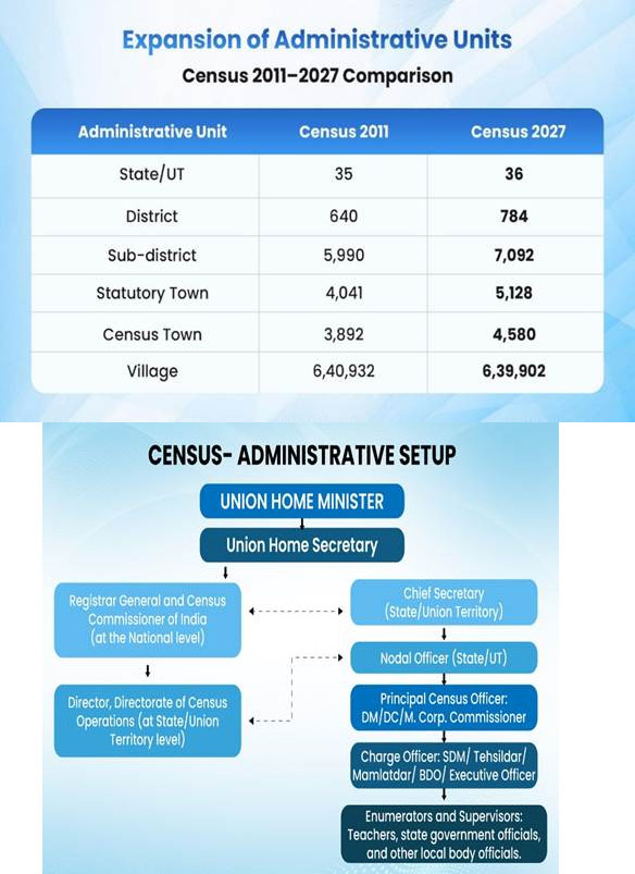 Census 2027 will be the 16th in the series of Indian census and 8th since independence. This will be the largest census exercise in the world and marks a major step forward with digital integration, strengthened data security, and streamlining processes, reinforcing evidence-based policymaking. It introduces several pioneering features, including mobile-based data collection, near real-time monitoring through the Census Management & Monitoring System (CMMS) portal, an optional self-enumeration facility, and extensive use of geo-referenced jurisdictions. Comprehensive caste enumeration will be done during the Population Enumeration phase.
